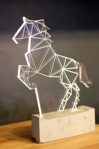 Lámpara de ilusión 3d para para decoración e ilumianción. Su funcionamiento se fundamenta en una reacción electroquímica que la provee de energía para funcionar autónomamente, el filamento que se utiliza esta fabricado a base de plásticos reciclados. Se puede elgir el diseño y con ello personalizar.